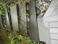 Har en liten tørrmurt skifertrapp som vi vil ha erstattet med trapp i vedlikeholdsfri kompositt.