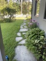Legge belegningsstein og bygge om trappBelegningsstein i hage 30-40 m. 1-1, 5 m brede. Se på løsning for å bygge om trapp til øvre platå ca 1m høy med gelender. Se på løsning for bed/beplantning-